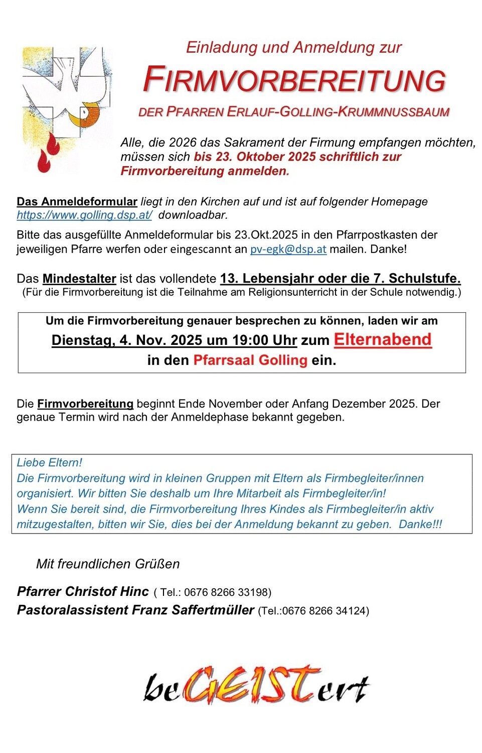 Pastoralassistent Franz Saffertmüller: 0676/82 66 34 124