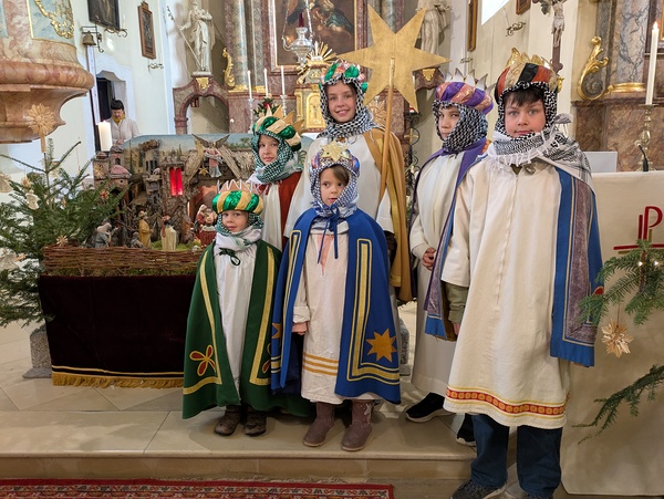 Am Dienstag, dem 6.1., Erscheinung des Herrn stellte sich eine Abordnung der Sternsinger vor der Hl. Messe der Pfarrgemeinde vor und feierte gemeinsam mit der Pfarrgemeinde die Hl. Messe.