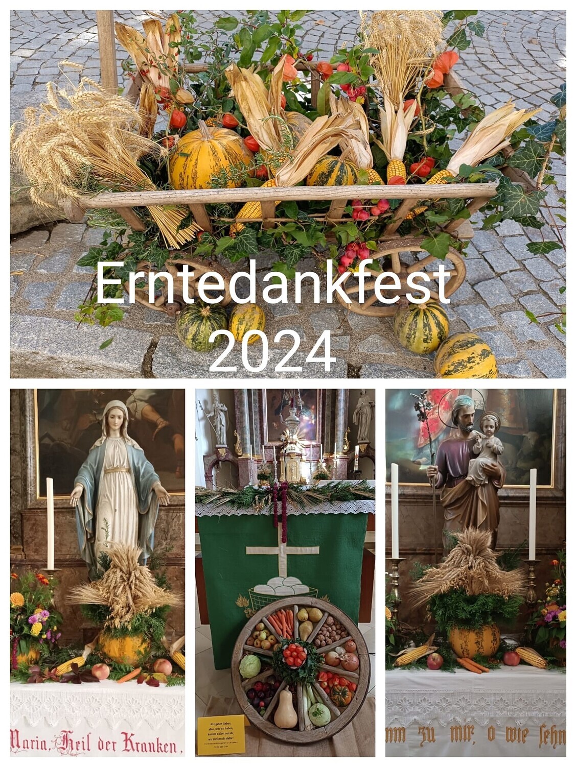 Die Gaben der Kinder wurden mit einem Dankeschön für die reiche Ernte am Altar niedergelegt. Musikalisch wurde die Messe von der Gitarrengruppe gestaltet. Die Altäre waren hervorragend und elegant mit den Früchten von Garten und Acker geschmückt.