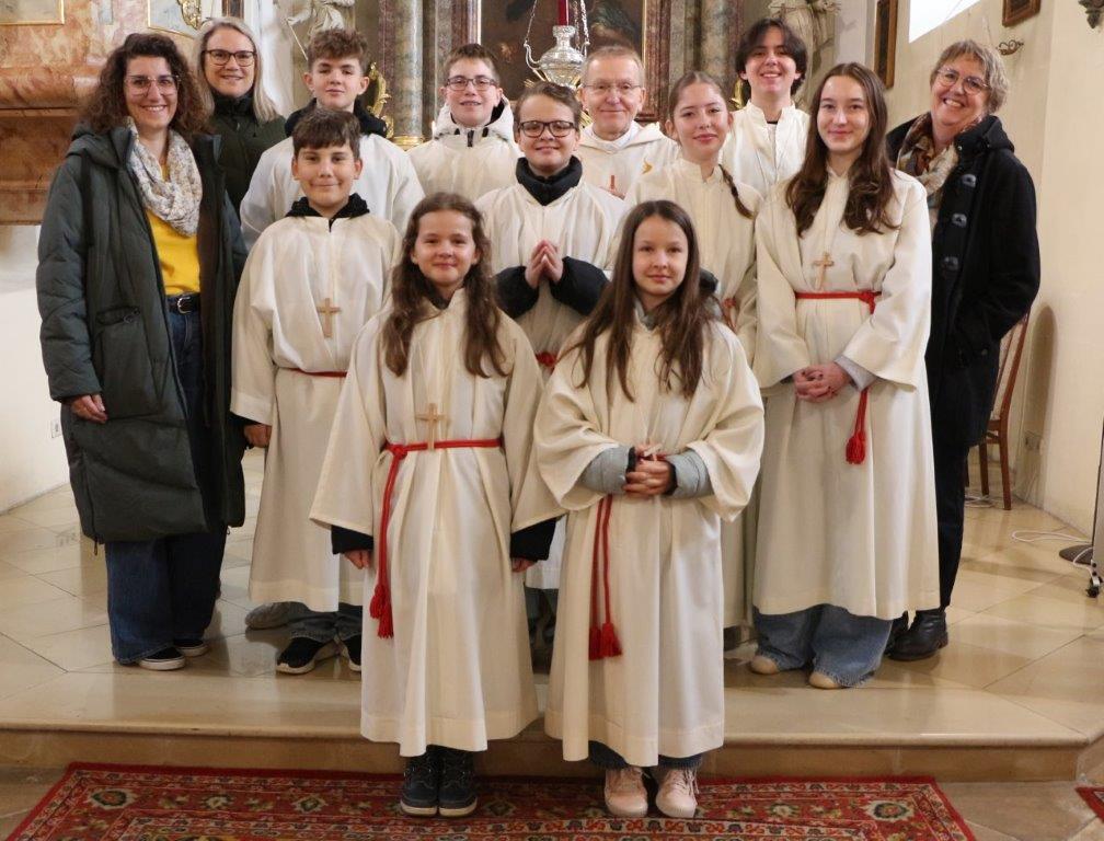 Dem Tag der Freude war aber auch etwas Wehmut beigemengt, sechs der altgedienten Ministranten gingen mit dem Versprechen, bei hohen Feiertagen auszuhelfen, in den Ministrantenruhestand. Sie erhielten als Dank für ihre jahrelange Tätigkeit ebenfalls einen langen Applaus. Im Anschluss an die Hl. Messe gab es eine von den Minis gestaltete Agape, die wegen der Minusgrade im Pfarrsaal stattfand.